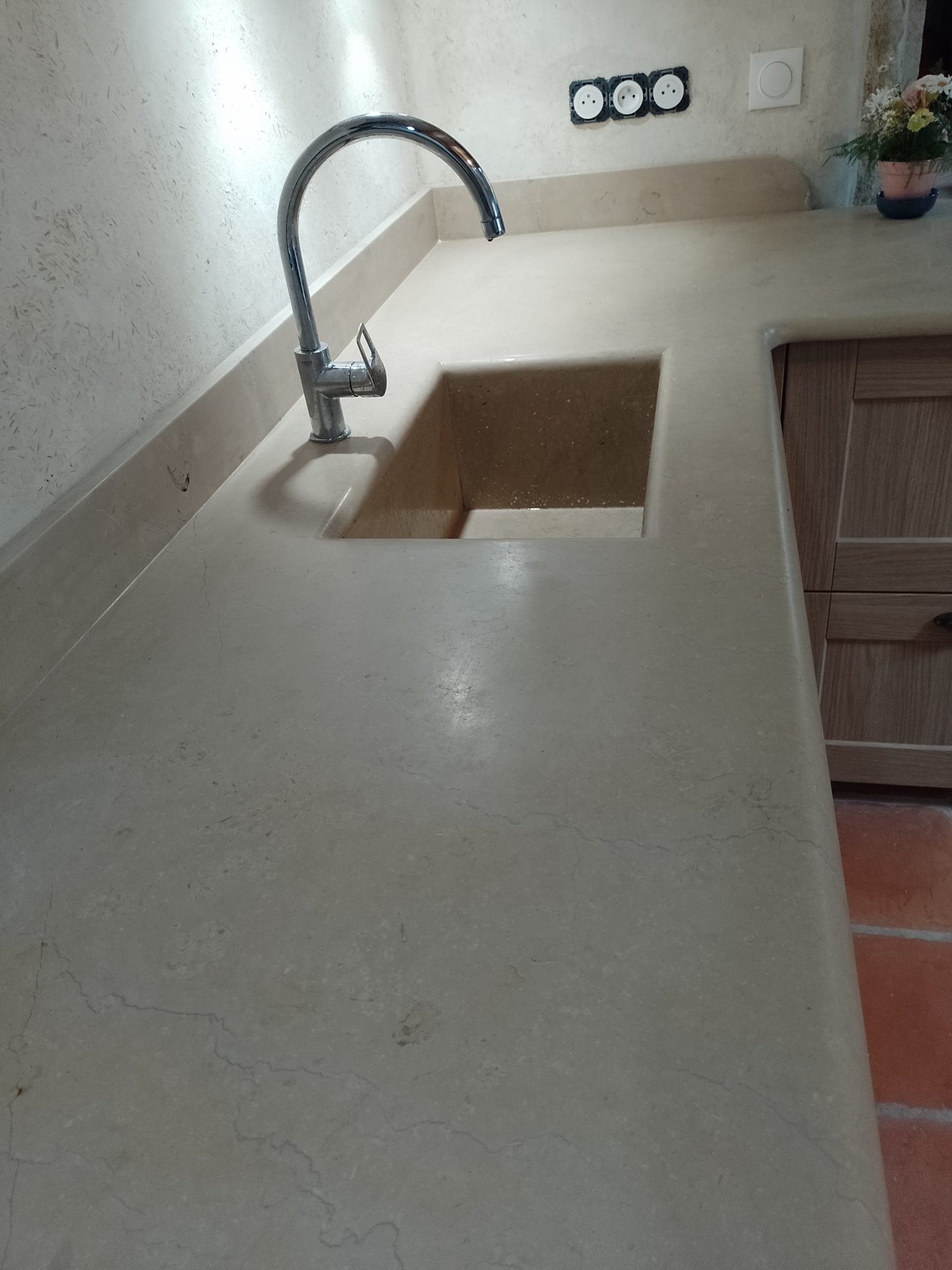 Taille et Façonnage de la pierre et du marbre en fine épaisseur. Créations sur mesure, pour des plans de travail de cuisines, éviers assemblés. Rénovation et Création. Ajoutez une touche d’élégance à chaque espace.